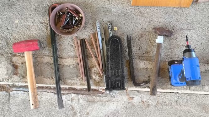 なるべく低コストで済ませるなら100円ショップの工具やのこぎり程度のものを買ってきてやれなくはないだろうけど、とんでもない時間がかかるし体力的にも現実的ではありません。